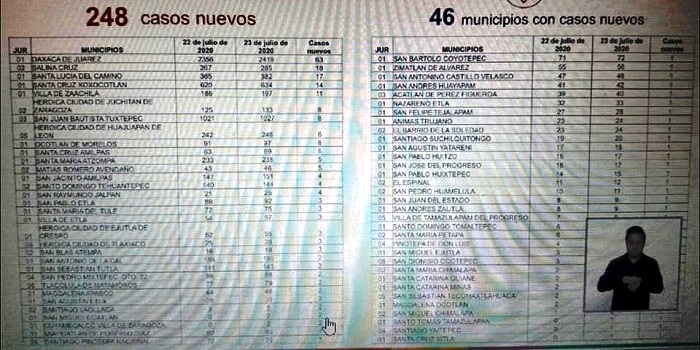 Más del 50% de los municipios de Oaxaca infectados por covid-19, hoy 248 casos y 11 muertos más