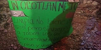 Se informa que en este mensaje se lee que se hará una limpia en ese municipio oaxaqueño. Pedro PAROLA | Cuarta Plana|Viernes, 05 de agosto de 2022 10:17 hrs.|Oaxaca, Oax.- Un narco mensaje fue localizado en calles de Ocotlán de Morelos, municipio de los Valles Centrales de Oaxaca. De acuerdo con el reporte policiaco, el mensaje fue colocado sobre una cartulina y hallado en una calle de esa población. Se informo que en el mensaje se lee que se hará una limpia en el municipio, y que van sobretodo por…
