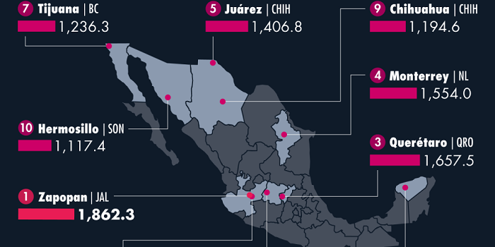 Algunos de los municipios ubicados en la región del Bajío y el norte son los que presentan mayor recaudación impositiva por pagos de predial, al menos, durante 2023. Zapopan ocupa la primera posición en la lista. Por: Redacción| Infográfico EE |El Economista |viernes 29 de noviembre de 2024 – 10:39En México, la recaudación por pagos de predial representa 0.14% del PIB nacional. En el ranking por municipios, se observa que Zapopan, en Jalisco es la localidad con la recaudación por impuestos de predial más alta a nivel nacional. Sólo en…