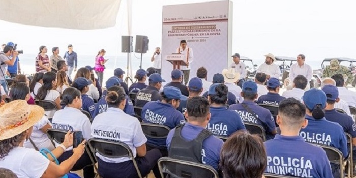 El Gobernador de Oaxaca entregó 22 vehículos de respuesta rápida a siete localidades de la región Costa. San Pedro Mixtepec, Oax. 17 de agosto de 2024.- Con una inversión de 9 millones 349 mil 177 pesos, el Gobernador Salomón Jara Cruz entregó 22 vehículos de respuesta rápida para el fortalecimiento de la seguridad pública de siete municipios que forman parte del programa Costa Segura. El Mandatario Estatal indicó que esta amplia estrategia beneficiará principalmente a habitantes de esta región de Oaxaca, así como a las personas visitantes nacionales y extranjeras…