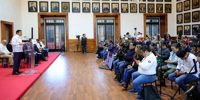 El Gobernador Salomón Jara Cruz en compañía de titulares de diversas secretarías informó los resultados de los programas implementados durante el año Oaxaca de Juárez, Oax. 27 de agosto de 2024.- El Gobernador Salomón Jara Cruz dio a conocer que con una inversión de mil 880 millones de pesos se han impulsado programas sociales y obras que benefician a toda la entidad. En conferencia de prensa, el Mandatario Estatal expresó que con ello se salda la deuda histórica con los pueblos, se reduce la desigualdad, genera bienestar y disminuye la pobreza…