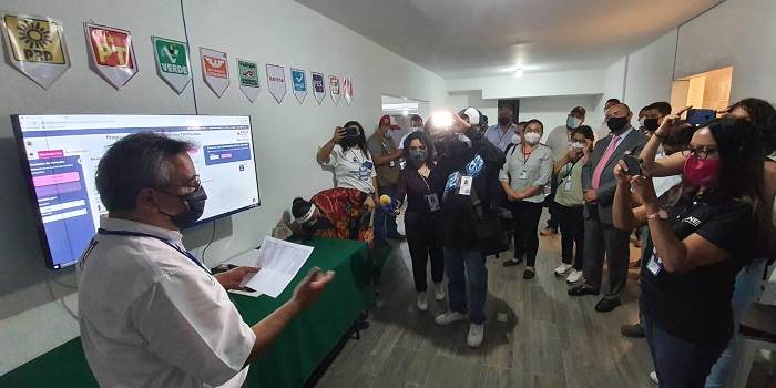 El Instituto Estatal Electoral y de Participación Ciudadana de Oaxaca (IEEPCO) realizó el tercer simulacro del Programa de Resultados Electorales Preliminares (PREP), a una semana de la Jornada Electoral del próximo 6 de junio, se verificó el correcto funcionamiento del Programa. En presencia de integrantes del Comité Técnico Asesor del PREP, así como del consejero Alejandro Carrasco Sampedro, presidente de la Comisión para el Seguimiento del PREP, el tercer simulacro mostró en tiempo real el funcionamiento del Programa, de los Centros de Acopio y Transmisión de Datos (CATD), además de…