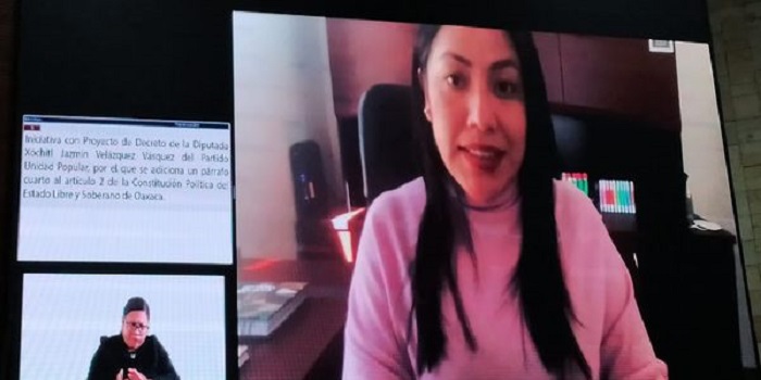 Juan López Sánchez/Barra Informativa/San Raymundo Jalpan Oaxaca, 12 de enero 2022.- La diputada del Partido Unidad Popular,presentó en la sesión ordinaria de éste día la siguiente: «Iniciativa con Proyecto de Decreto de la Diputada Xóchitl Jazmín Velázquez Vázquez del Partido Unidad Popular, por el que se adiciona un párrafo cuarto al artículo 2 de la Constitución Política del Estado Libre y Soberano de Oaxaca.»