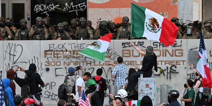 Jim Cason y David Brooks | Foto Afp | La Jornada |11 de junio de 2025 07:24| Washington y Nueva York. La secretaria de Seguridad Interna, Kristi Noem, condenó a la presidenta Claudia Sheinbaum, a quien acusó de alentar más acciones de protestas violentas en Los Ángeles, mientras aliados del mandatario Donald Trump fomentan más ataques contra la gobernante mexicana. “Claudia Sheinbaum salió para alentar más protestas en Los Ángeles y la condeno por eso… No debería estar alentando las protestas violentas que ocurren”, declaró Noem al lado de Trump en…