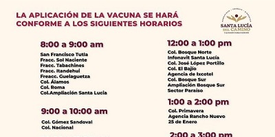 Anuncian jornada de vacunación de refuerzo contra el Covid-19 para habitantes de Santa Lucía del Camino y el biológico que se aplicará es el Astra Zeneca. Con el propósito de salvaguardar el bienestar de los habitantes de Santa Lucía del Camino, el Ayuntamiento anunció una nueva fecha para el refuerzo de la vacunación contra el Covid-19, mismo que será destinado a adultos mayores de 40 hasta 59 años de edad. Dicha jornada de vacunación tendrá como sede la explanada de la agencia municipal de San Francisco Tutla, y comprenderá los…