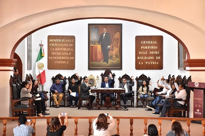 Durante la Sesión Ordinaria de Cabildo, el edil refrendó su compromiso irrestricto para mantener siempre un diálogo abierto y franco con los sindicatos del Ayuntamiento. Oaxaca de Juárez, Oaxaca, a 29 de enero de 2020.- Al presidir la Sesión Ordinaria de Cabildo, de este miércoles, el Presidente Municipal Oswaldo García Jarquín informó a este órgano colegiado, así como a la ciudadanía, los resolutivos obtenidos tras la mesa de trabajo sostenida con las y los integrantes de Sindicato Autónomo de Empleados y Trabajadores al Servicio del H. Ayuntamiento de Oaxaca de Juárez,…